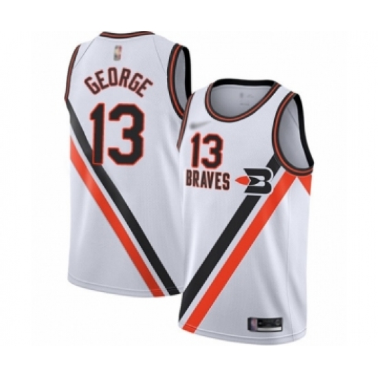 >Men's Los Angeles Clippers #13 Paul George Authentic White Hardwood Classics Finished Basketball Jersey