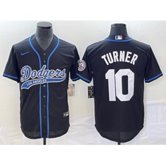 Men's Los Angeles Dodgers #10 Justin Turner Black Cool Base Stitched Baseball Jersey