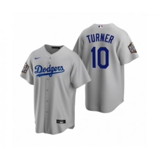 Men's Los Angeles Dodgers #10 Justin Turner Gray 2020 World Series Champions Road Replica Jersey