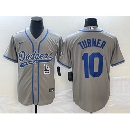 Men's Los Angeles Dodgers #10 Justin Turner Grey Cool Base Stitched Baseball Jersey