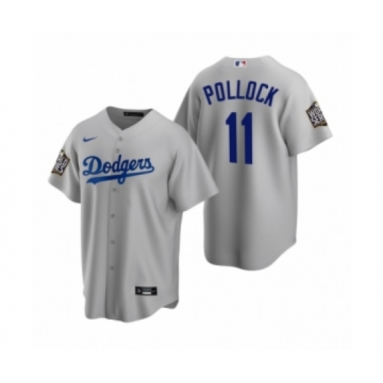 >Men's Los Angeles Dodgers #11 A.J. Pollock Gray 2020 World Series Replica Jersey