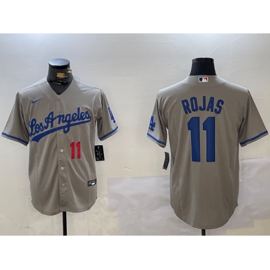 Men's Los Angeles Dodgers #11 Miguel Rojas Number Grey With los Cool Base Stitched Jersey