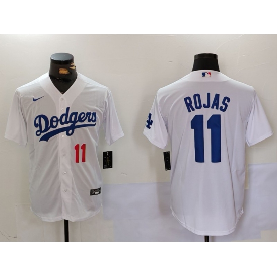 >Men's Los Angeles Dodgers #11 Miguel Rojas Number White Cool Base Stitched Jersey