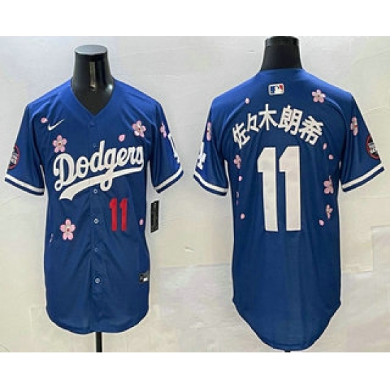 Men's Los Angeles Dodgers #11 Roki Sasaki Blue Japanese 2025 Tokyo Series Limited Jersey