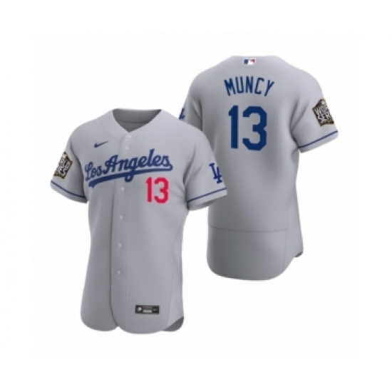 >Men's Los Angeles Dodgers #13 Max Muncy Nike Gray 2020 World Series Authentic Road Jersey