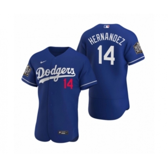 >Men's Los Angeles Dodgers #14 Enrique Hernandez Nike Royal 2020 World Series Authentic Jersey