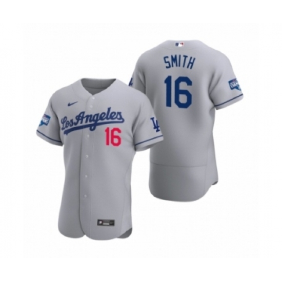>Men's Los Angeles Dodgers #16 Will Smith Gray 2020 World Series Champions Road Authentic Jersey