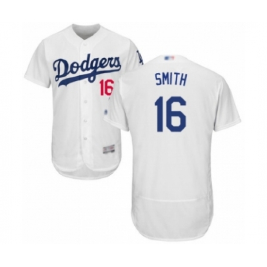 >Men's Los Angeles Dodgers #16 Will Smith White Home Flex Base Authentic Collection Baseball Player Jersey