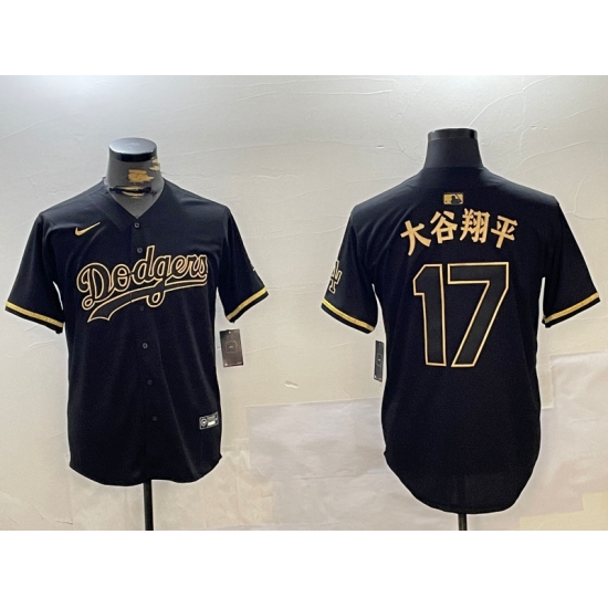 Men's Los Angeles Dodgers #17 太谷翔平 Black Cool Base Stitched Jersey