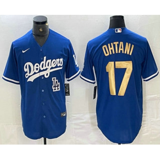 Men's Los Angeles Dodgers #17 Shohei Ohtani Blue Gold Stitched Cool Base Nike Jerseys