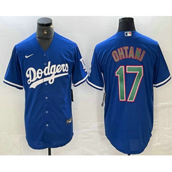 Men's Los Angeles Dodgers #17 Shohei Ohtani Blue Green Stitched Cool Base Nike Jerseys