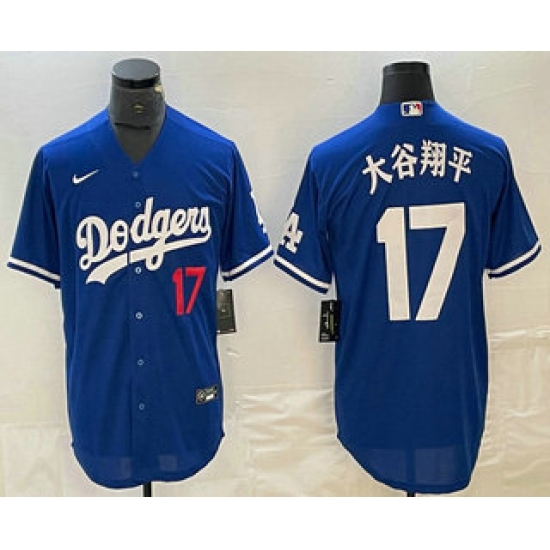 Men's Los Angeles Dodgers #17 Shohei Ohtani Blue Japanese Name Player Number Cool Base Jersey
