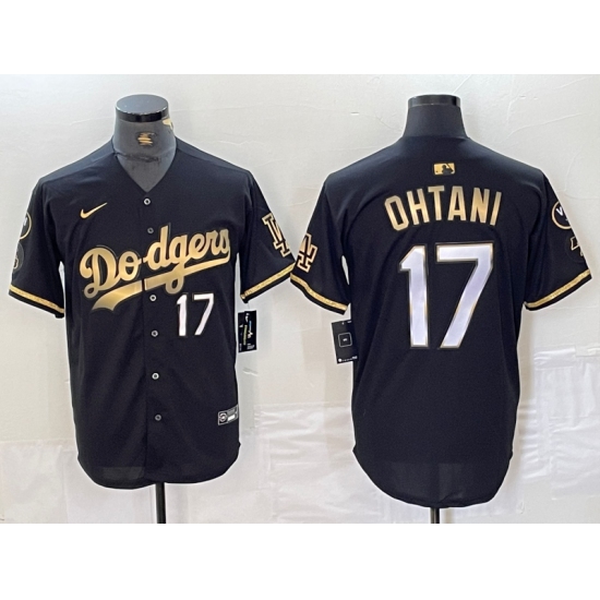 Men's Los Angeles Dodgers #17 Shohei Ohtani Number Black Gold Fashion Stitched Cool Base Limited Jersey