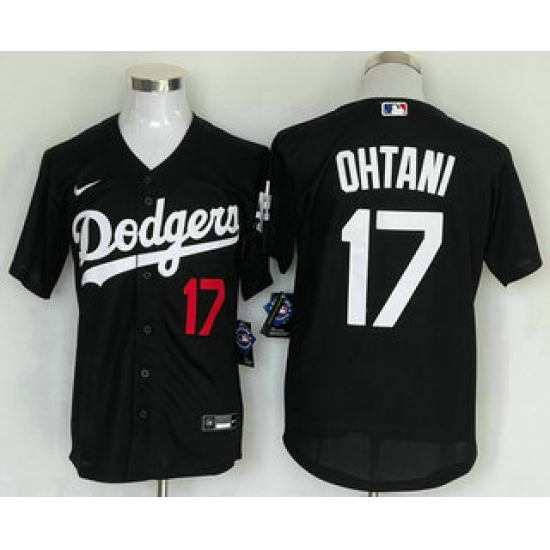 Men's Los Angeles Dodgers #17 Shohei Ohtani Number Black Stitched Cool Base Nike Jersey