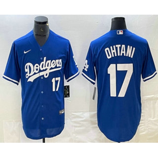 >Men's Los Angeles Dodgers #17 Shohei Ohtani Number Blue Stitched Cool Base Nike Jersey