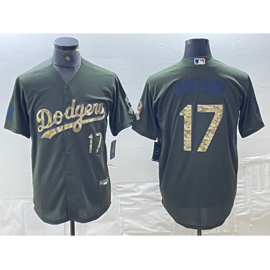 Men's Los Angeles Dodgers #17 Shohei Ohtani Number Green Salute To Service Stitched Cool Base Nike Jersey