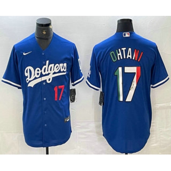 Men's Los Angeles Dodgers #17 Shohei Ohtani Number Mexico Blue Cool Base Stitched Jerseys