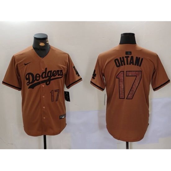 Men's Los Angeles Dodgers #17 Shohei Ohtani Number Olive Cool Base Limited Stitched Jersey
