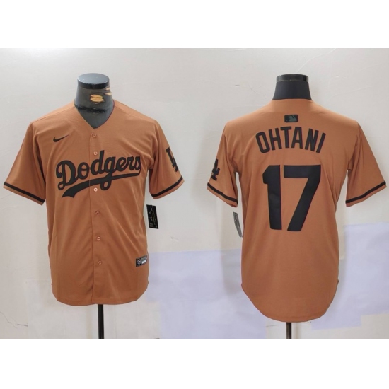 Men's Los Angeles Dodgers #17 Shohei Ohtani Olive Black Cool Base Limited Stitched Jersey