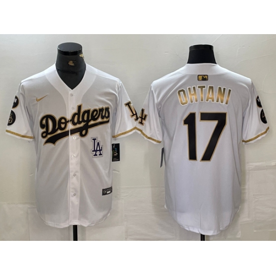 Men's Los Angeles Dodgers #17 Shohei Ohtani White Gold Fashion Stitched Cool Base Limited Jersey