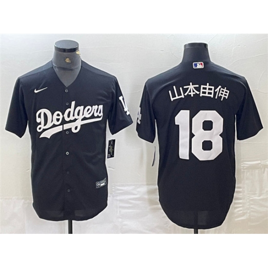 >Men's Los Angeles Dodgers #18 山本由伸 Black Cool Base Stitched Baseball Jersey