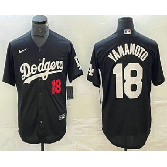 Men's Los Angeles Dodgers #18 Yoshinobu Yamamoto Number Black Stitched Cool Base Nike Jersey