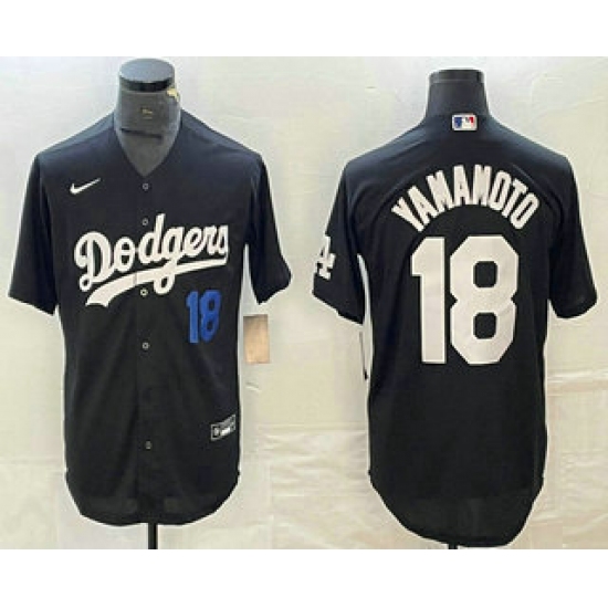>Men's Los Angeles Dodgers #18 Yoshinobu Yamamoto Number Black Turn Back The Clock Stitched Cool Base Jersey