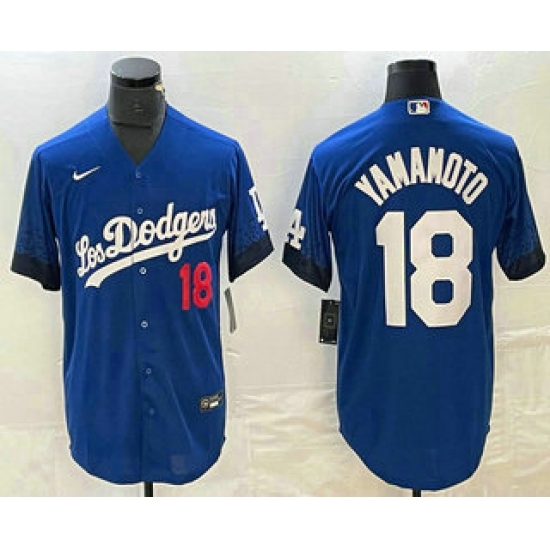 Men's Los Angeles Dodgers #18 Yoshinobu Yamamoto Number Blue 2021 City Connect Cool Base Stitched Jersey