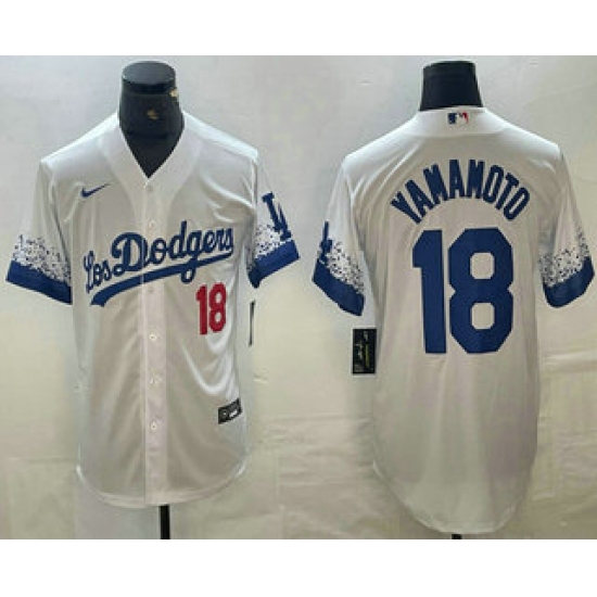 Men's Los Angeles Dodgers #18 山本由伸 White City Connect Cool Base Stitched Jersey