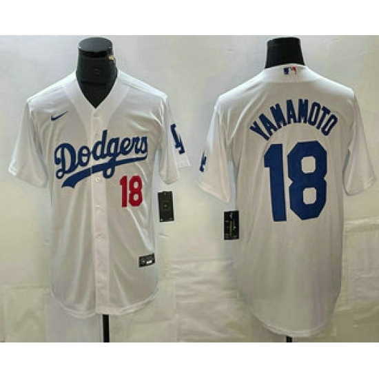 >Men's Los Angeles Dodgers #18 Yoshinobu Yamamoto Number White Stitched Cool Base Nike Jersey