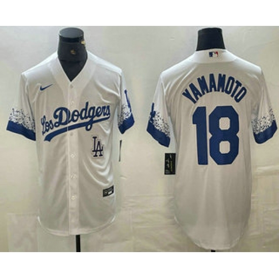 Men's Los Angeles Dodgers #18 Yoshinobu Yamamoto White 2021 City Connect Cool Base Stitched Jerseys