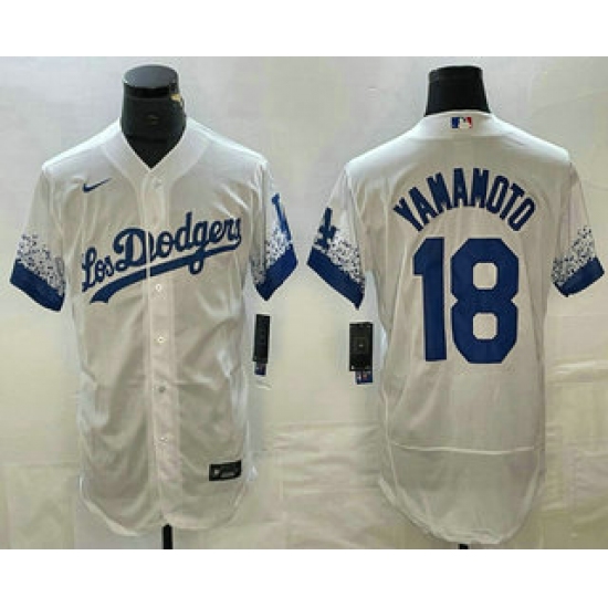 Men's Los Angeles Dodgers #18 Yoshinobu Yamamoto White 2022 City Connect Flex Base Stitched Jersey