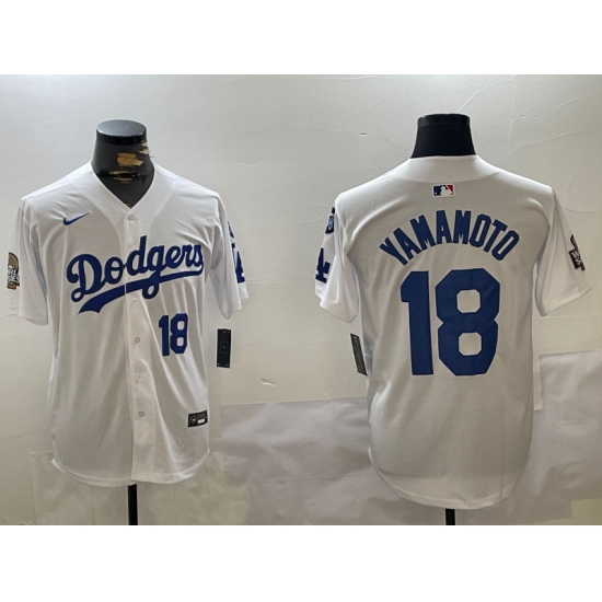 Mens Los Angeles Dodgers #18 Yoshinobu Yamamoto White 2024 World Series With Fernando Memorial Home Limited Stitched Baseball Jersey