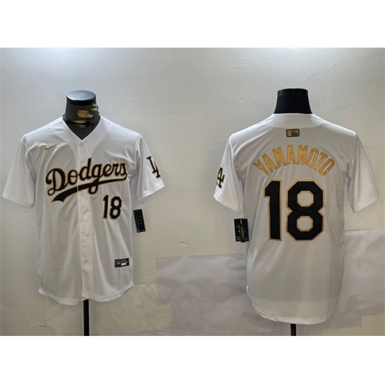 Men's Los Angeles Dodgers #18 Yoshinobu Yamamoto White Gold Home Limited Stitched Baseball Jersey