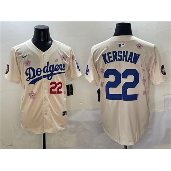 >Men's Los Angeles Dodgers #22 Clayton Kershaw Cream 2025 Tokyo Series Limited Stitched Baseball Jersey