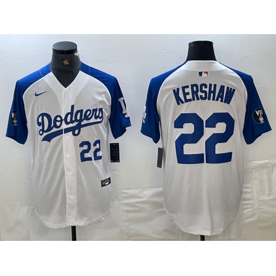 Men's Los Angeles Dodgers #22 Clayton Kershaw Number White Blue Fashion Stitched Cool Base Limited Jerseys