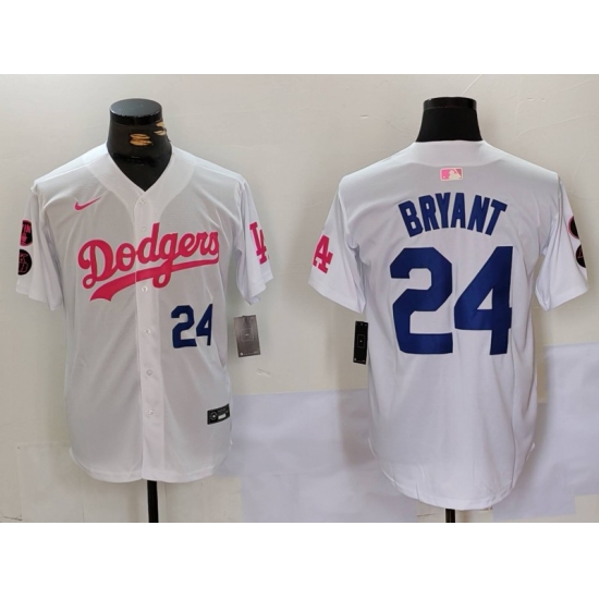Men's Los Angeles Dodgers #24 Kobe Bryant White Pink Vin & Kobe Stitched Baseball Jersey