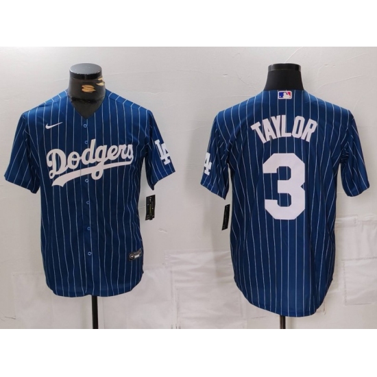 >Men's Los Angeles Dodgers #3 Chris Taylor Navy Pinstripe Stitched Cool Base Nike Jersey