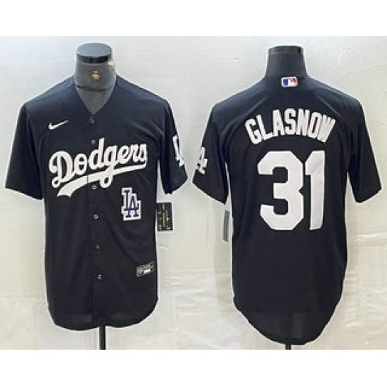 Men's Los Angeles Dodgers #31 Tyler Glasnow Black Turn Back The Clock Stitched Cool Base Jersey