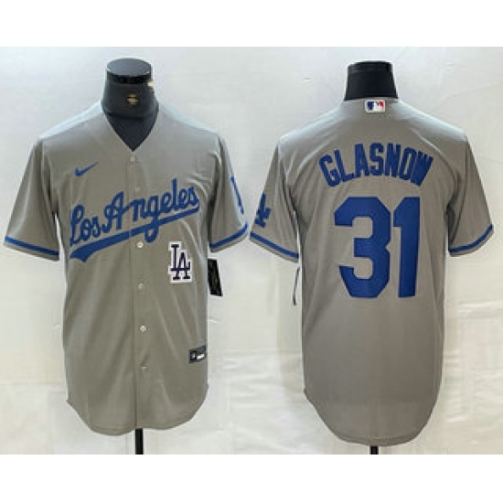 >Men's Los Angeles Dodgers #31 Tyler Glasnow Gray Alternate Team Logo Cool Base Jerseys