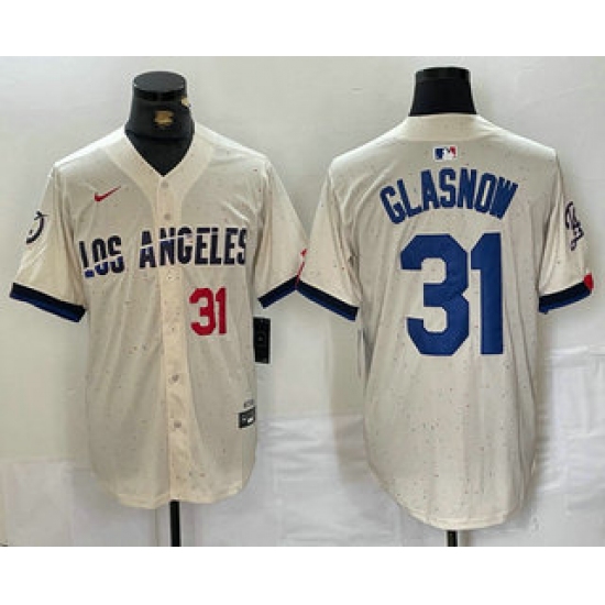 Men's Los Angeles Dodgers #31 Tyler Glasnow Number Cream Blue 2024 City Connect Limited Stitched Jersey
