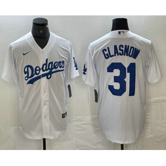>Men's Los Angeles Dodgers #31 Tyler Glasnow White Stitched Cool Base Nike Jerseys