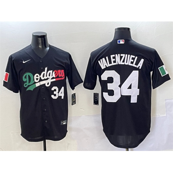 Men's Los Angeles Dodgers #34 Fernando Valenzuela Black Mexico Flag Cool Base Stitched Baseball Jersey