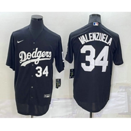 Men's Los Angeles Dodgers #34 Fernando Valenzuela Black Rainbow Mexico Cool Base Stitched Fashion Jersey