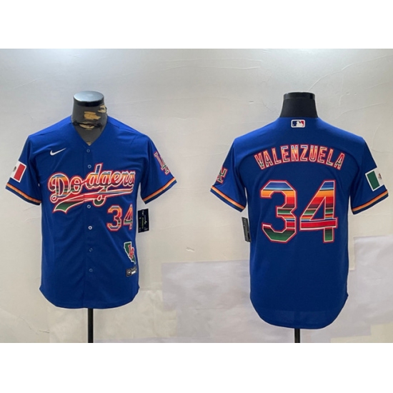 Men's Los Angeles Dodgers #34 Fernando Valenzuela Royal Mexico California Cool Base Stitched Baseball Jersey