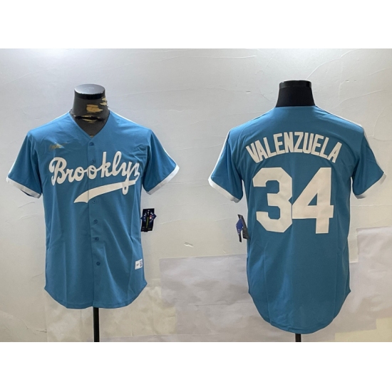 Men's Los Angeles Dodgers #34 Fernando Valenzuela Number Blue 2021 City Connect Cool Base Stitched Jersey
