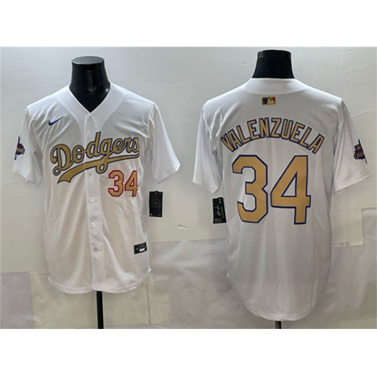 Men's Los Angeles Dodgers #34 Toro Valenzuela White 2025 Gold Collection Limited Stitched Baseball Jersey