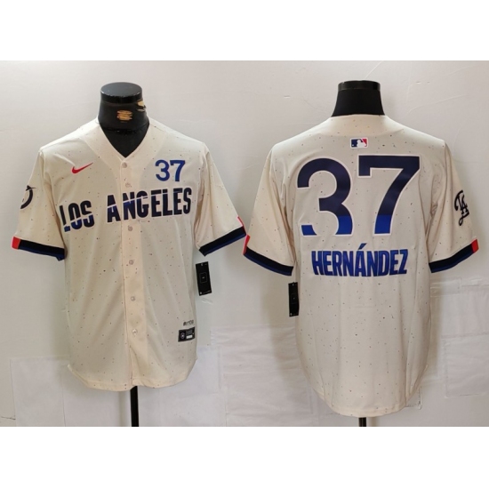 >Men's Los Angeles Dodgers #37 Teoscar Hernandez Cream 2024 City Connect Limited Stitched Jersey