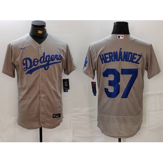 Men's Los Angeles Dodgers #37 Teoscar Hernandez Grey Flex Base Stitched Jersey