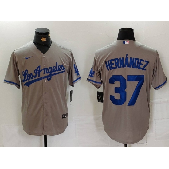 Men's Los Angeles Dodgers #37 Teoscar Hernandez Grey With Los Cool Base Stitched Jersey